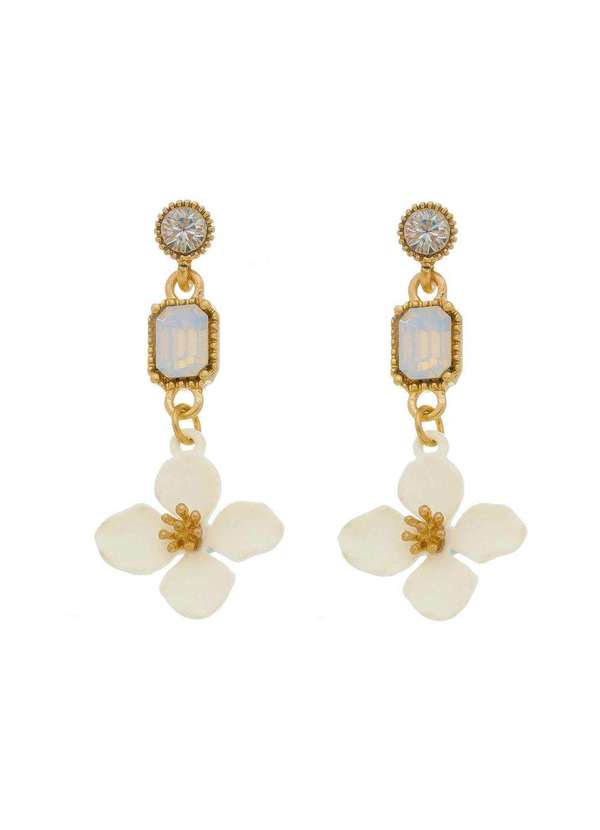 Piuka - Brinco de Flor Acacia Off White Strass White Opal Transparente