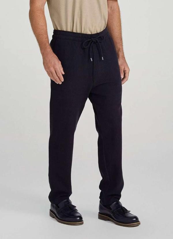 Calça Básica Masculina Taper Em Malha Canelada, confeccionada em malha pesada de algodão não peluciado com acabamento canelado. Possui modelagem taper, mais larga no quadril e vai afunilando na barra. Conta com cadarço no cós para ajuste, bolsos nas laterais e na parte posterior da peça.A malha canelada une o conforto da malha com o charme do canelado! O detalhe especial fica por conta das listras em alto relevo que proporcionam um design moderno à peça. Aposte e crie looks com camisetas e blusões da coleção!