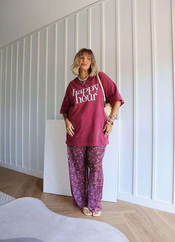 Calça em tule estampada, com forro interno e caimento reto, garantindo conforto e um visual fluido. Uma peça leve e versátil, ideal para quem busca estilo sem abrir mão do bem-estar. Modelo Jes esta usando tamanho G4 Composição: Tecido 95% poliester 5% elastano Forro: 100% poliester