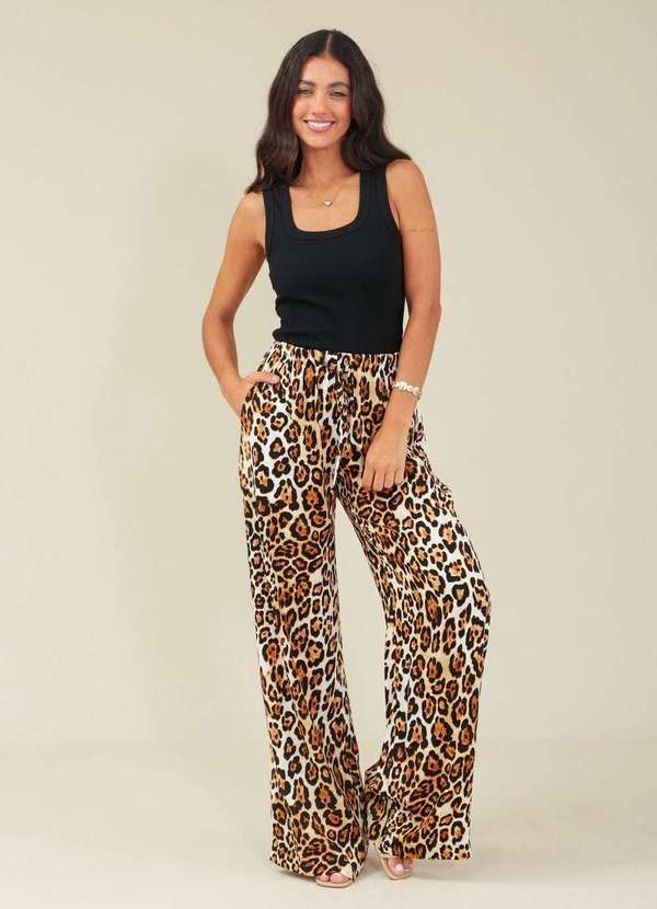 Pop Me - Calca em Viscose Cordao Cos Estampa Onca Bege