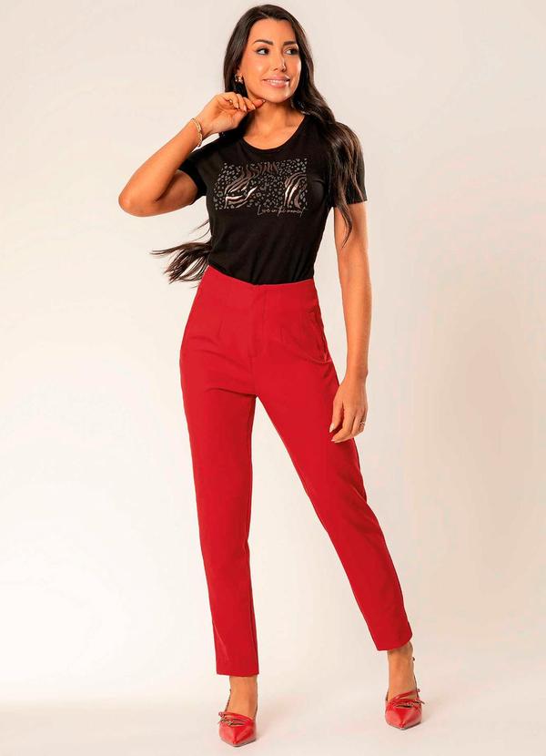Cativa - Calça Feminina em Alfaiataria com Bolso Vermelho