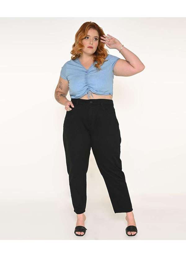 Razon Jeans - Calça Feminina Sarja Plus Mom Basica Preto - Preto