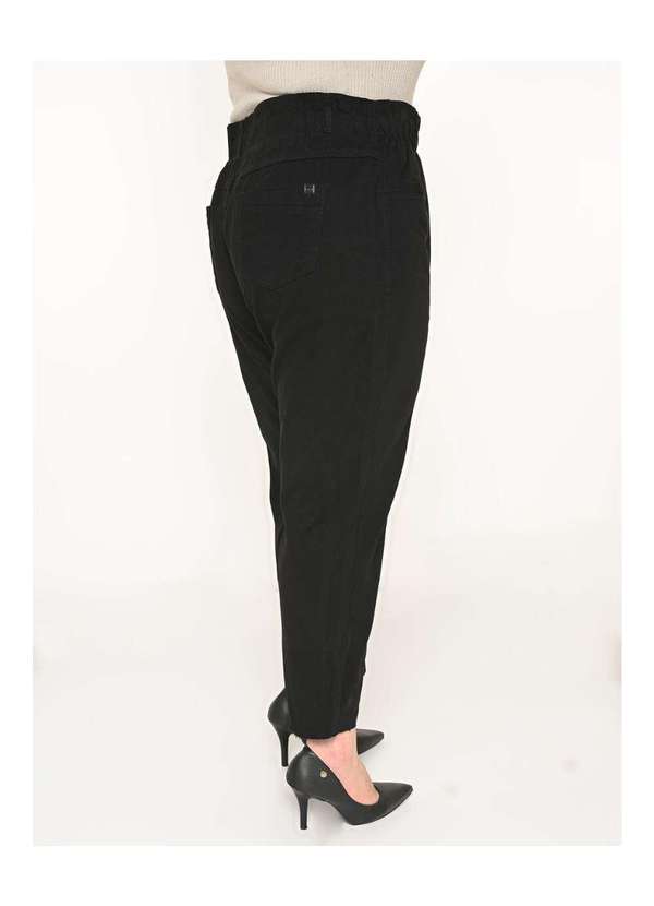 Calça Feminina Sarja Mom Plus Preto com recortes, cós com elástico, bolso funcional e barra a fio - 100% Algodão GRADE 1 - 2 - 2 - 2 - 1.