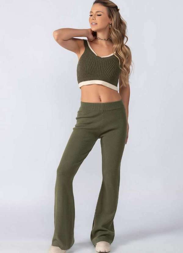 Lamis - Calca Flare em Tricot Lisa Elastico Cos Verde Musgo