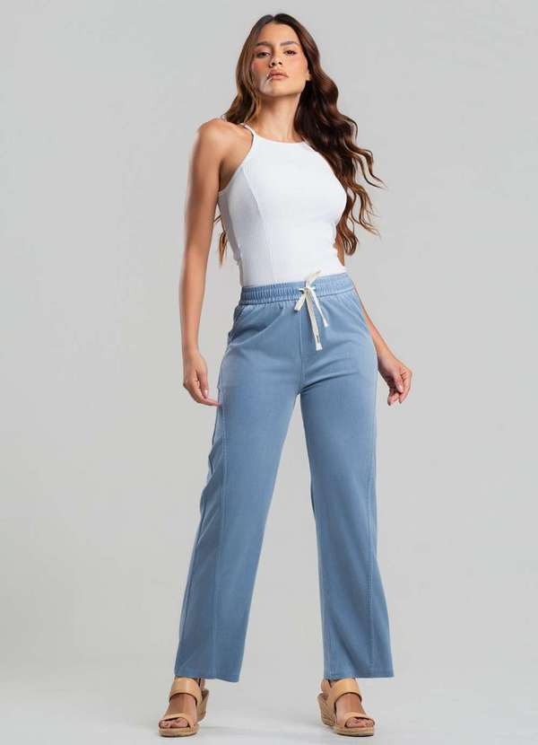 Salvatore Fashion - Calça Jeans Cintura Elástica e Amarração Azul