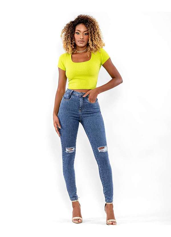 Consciência - Calca Jeans Feminina Extreme Power com Rasgo no Joelho Azul
