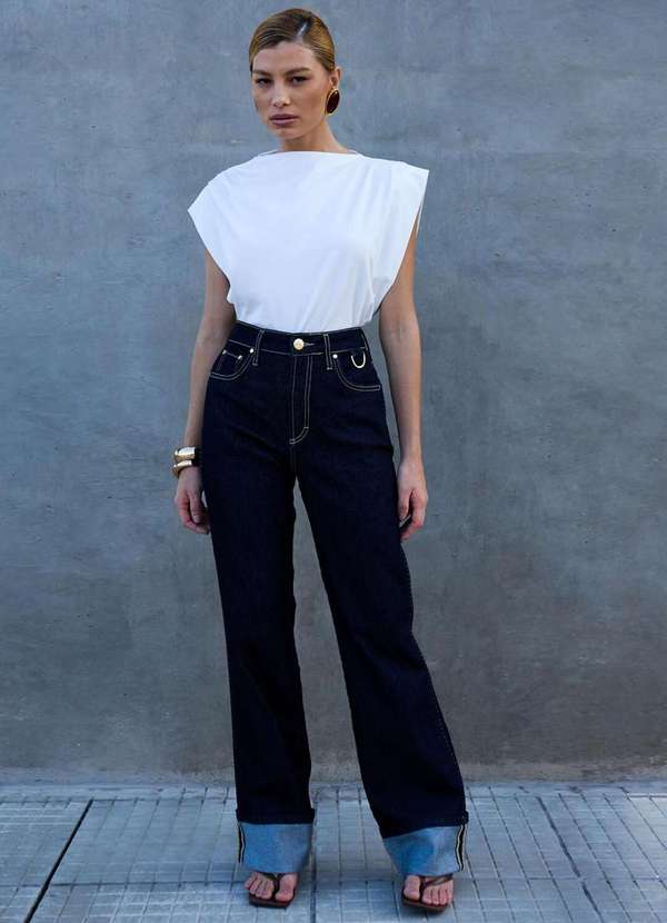 Laccord - Calca Jeans Reta Amaciada com Barra Virada Azul