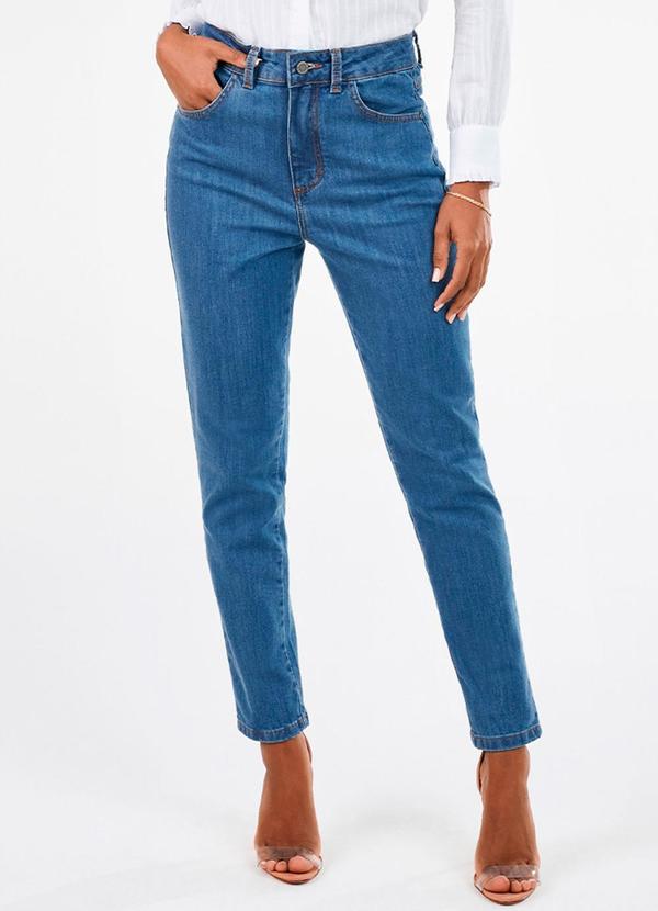 Principessa - Calça Jeans Reta Cintura Média Sarita Azul
