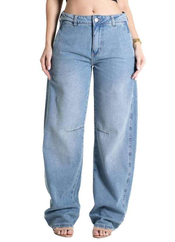 Calça feminina confeccionada em jeans.A peça tem a modelagem barrel, com o caimento é confortavel solto ao corpo. Cintura alta Fechamento através de um botão e zíper Bolsos frontais e posteriores funcionais Barra simples Tecido: JeansTipo de Lavagem: azul Cor: AzulComposição: 100% ALGODÃO