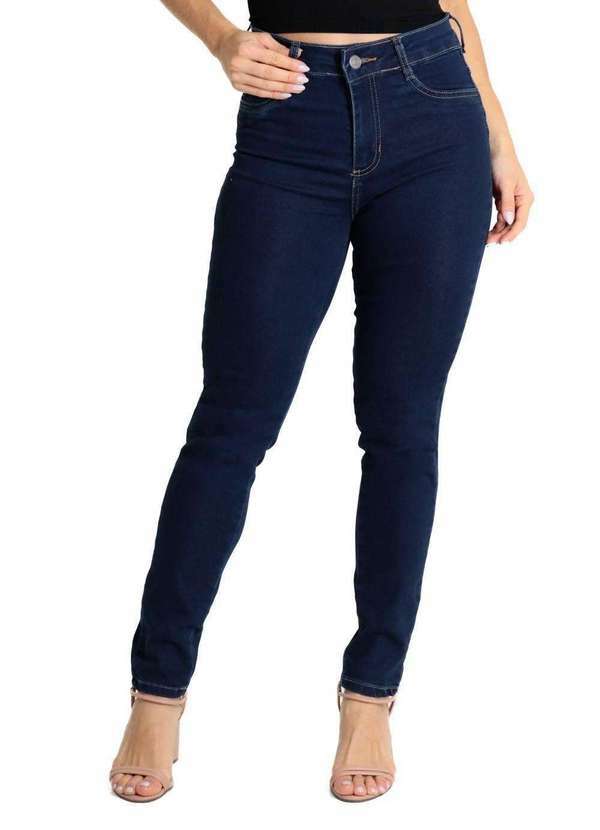 Calça levanta bumbum confeccionada em jeans. A modelagem tem quatro pences que valorizam as formas. Cintura médio Fechamento com botão metálico e zíper Bolsos frontais falsos e bolsos traseiros funcionais Barra simples Tecido: Jeans Tipo de lavagem: Azul Cor: Azul escuroComposição: 76% ALGODÃO 22% POLIÉSTER 02% ELASTANO