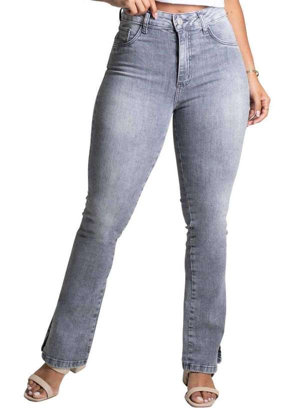 Calça jeans feminina de modelagem reta, com caimento mais solto ao corpo. Cintura alta Fechamento com botão e zíper Bolsos frontais e bolsos traseiros funcionais Barra com fenda lateral Tecido: Jeans Tipo de lavagem: Color Cor: CinzaComposição:98% Algodão 2% Elastano