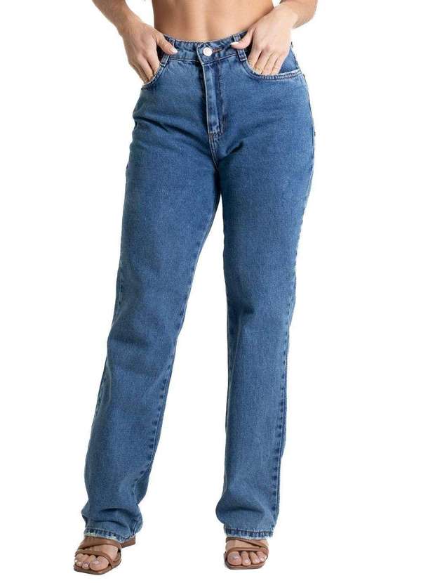 Calça jeans feminina de modelagem reta, com caimento mais solto ao corpo. Cintura média Fechamento com botão e zíper Bolsos frontais e bolsos traseiros funcionais Barra simples Tecido: JeansTipo de lavagem: Azul Cor: Azul medioComposição: 100% ALGODÃO