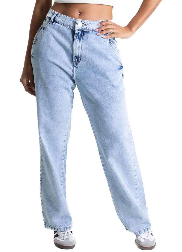 Calça jeans feminina de modelagem reta, com caimento mais solto ao corpo. Cintura alta Fechamento com botão e zíper Bolsos frontais e bolsos traseiros funcionais Barra simples Tecido: Jeans Tipo de lavagem: Azul Cor: Azul claroComposição: 100% ALGODÃO