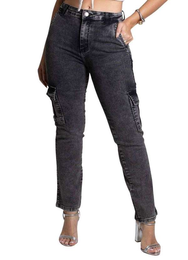 Sawary - Calça Jeans Sawary Reta Cargo Preto
