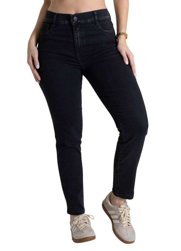Calça skinny confeccionada jeans. A modelagem é com caimento super ajustado ao corpo Cintura alta Fechamento com botão metálico e zíper Bolsos frontais falsos e bolsos traseiros funcionais Barra simples Modelagem: Skinny Tecido: Jeans Tipo de lavagem: color Cor: pretaComposição: 75% ALGODÃO 22% POLIÉSTER 3% ELASTANO