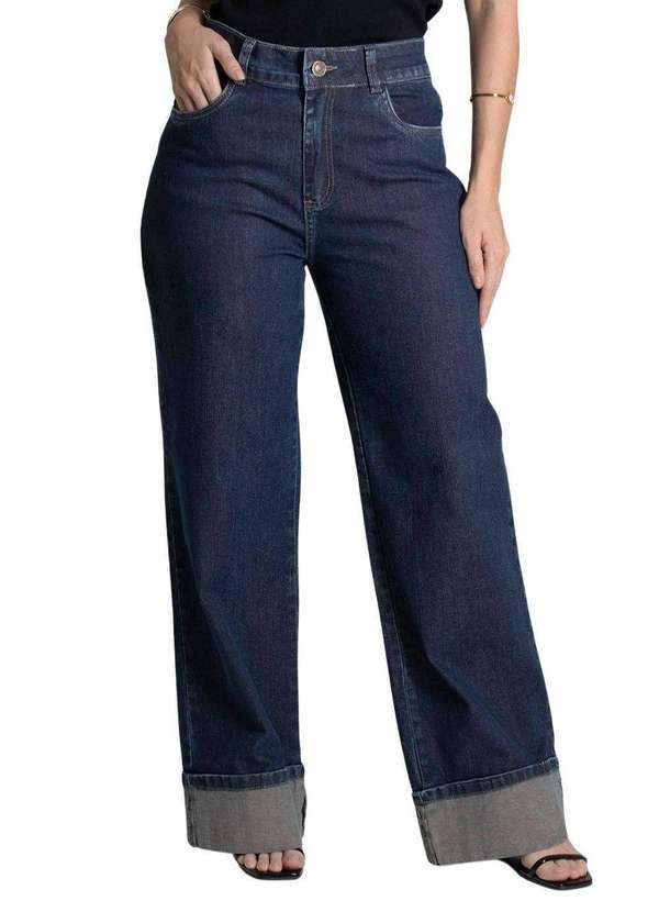Calça feminina confeccionada em jeans. O modelo possui cintura super alta, gancho no lugar e caimento amplo da coxa até a barra. Cintura alta Fechamento através de um botão e zíper.cós acompanha um cordão com o mesmo tecido para amarração Bolsos frontais e posteriores funcionais Barra simples Tecido: Jeans Tipo de Lavagem: azul Cor: Azul escuroComposição: 98% ALGODÃO 02% ELASTANOTipo de lavagem: LEDISTRI