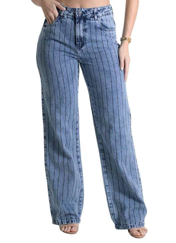 Calça feminina confeccionada em jeans. O modelo possui cintura super alta, gancho no lugar e caimento amplo da coxa até a barra. Cintura alta Fechamento através de um botão e zíper Bolsos frontais com leves puídos e posteriores funcionais Barra simples Tecido: Jeans Tipo de Lavagem: Azul Cor: Azul claroComposição: 100% ALGODÃOTipo de lavagem: LEDISTRI