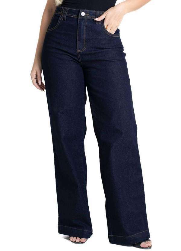 Calça feminina confeccionada em jeans. O modelo possui cintura super alta, gancho no lugar e caimento amplo da coxa até a barra. Cintura alta Fechamento através de um botão e zíper Bolsos frontais e posteriores funcionais Barra simples Tecido: Jeans Tipo de Lavagem: Azul Cor: Azul escuroComposição: 82% ALGODÃO 16% POLIÉSTER 02% ELASTANOTipo de lavagem: AMACIADO