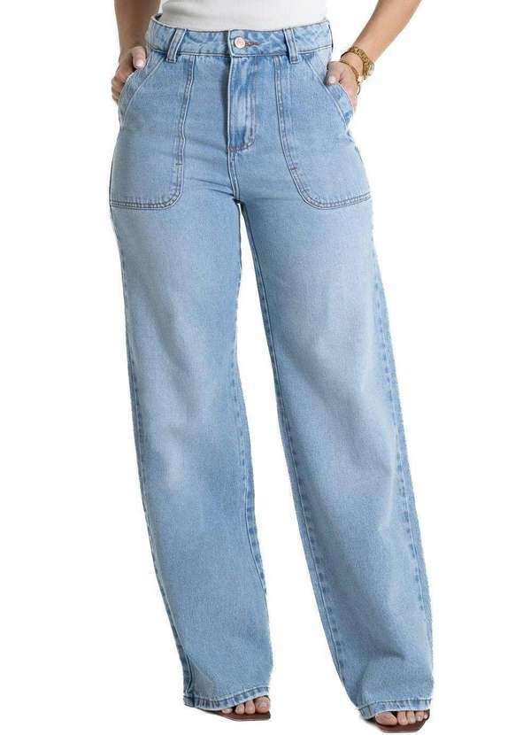 Calça feminina confeccionada em jeans.O modelo possui cintura super alta, gancho no lugar e caimento amplo da coxa até a barra. Cintura altaFechamento através de um botão e zíper Bolsos frontais e posteriores funcionais Barra simples Tecido: Jeans Tipo de Lavagem: Azul Cor: Azul medioComposição: 100% ALGODÃO