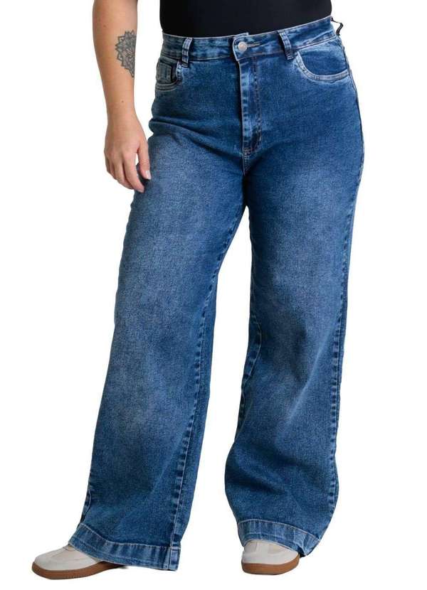 Calça feminina confeccionada em jeans. O modelo possui cintura super alta, gancho no lugar e caimento amplo da coxa até a barra. Cintura alta Fechamento através de um botão e zíper Bolsos frontais e posteriores funcionais Barra simples Tecido: Jeans Tipo de Lavagem: Azul Cor: AzulComposição: 80% ALGODÃO 18% POLIÉSTER 02% ELASTANOTipo de lavagem: KENNELAN
