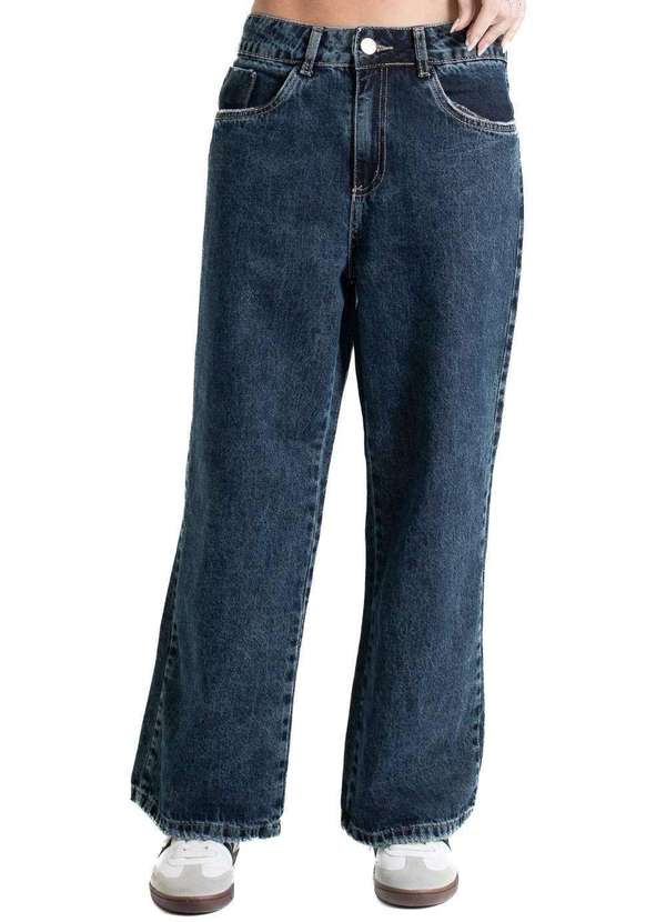 Calça feminina confeccionada em jeans.om caimento mais solto ao corpo.Cintura alta Fechamento com botão e zíper Bolsos frontais e bolsos traseiros basicos funcionaisBarra simples Tecido: Jeans Tipo de lavagem: Azul Cor: AzulComposição: 100% ALGODÃO
