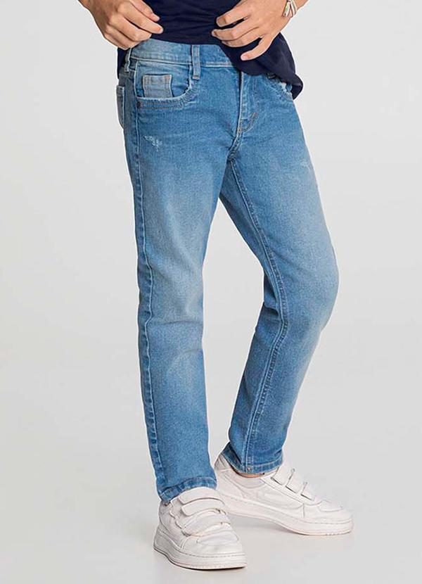 Alakazoo - Calça Jeans Skinny Bolsos e Puídos Leves Azul