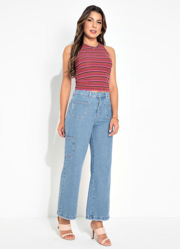Sawary Jeans - Calça Jeans Wide Leg cm Bolsos Sawary