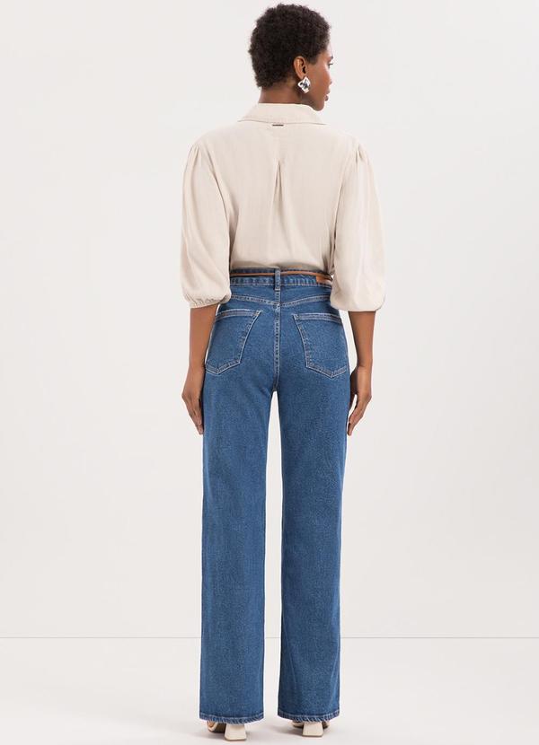 Lunender - Calça Jeans Wide Leg com Chapa Barriga Azul