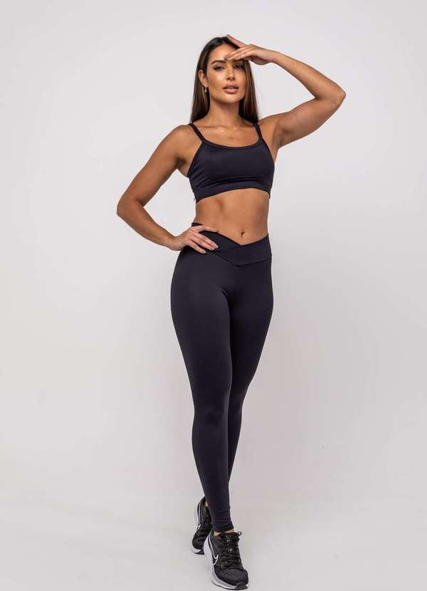 Salvatore Fashion - Calça Legging Suplex Poliamida Cós Assimétrico Preto