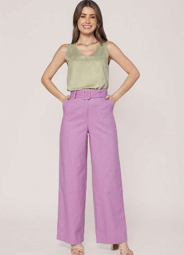 Lamis - Calça Linho Pantalona com Bolso Faca Lilas
