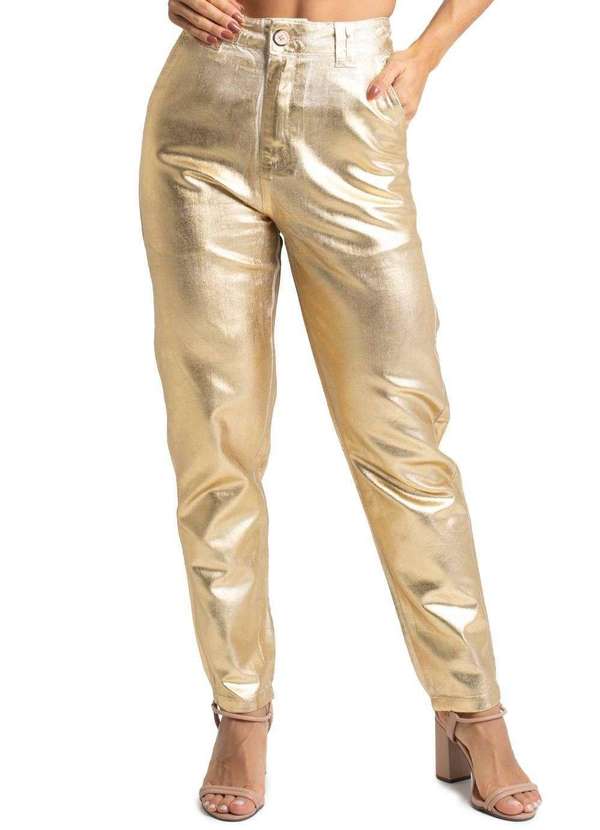 Calça mom confeccionada em linho. A modelagem mom tem um caimento soltinho nos quadris e coxas ajustando até o tornozelo. A calça possui detalhes em foil de cor dourada Cintura alta Fechamento com botão e zíper Bolsos frontais e bolsos traseiros funcionais Barra simples Modelagem: Mom Tecido: LinhoComposição: 58% Algodão 30% Viscose 12% Linho