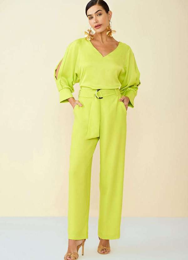 Maria.valentina - Calça Maria.Valentina Alfaiataria Cós Alto com Faixa Verde Claro Verde