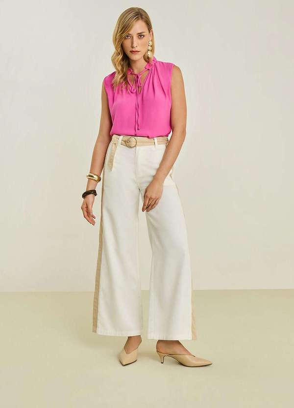 Maria.valentina - Calça Maria.Valentina Pantalona Alta Off White Branco
