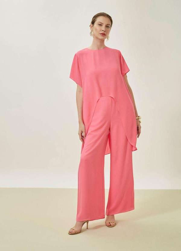 Maria.valentina - Calça Maria.Valentina Pantalona Alta Rosa Rosa