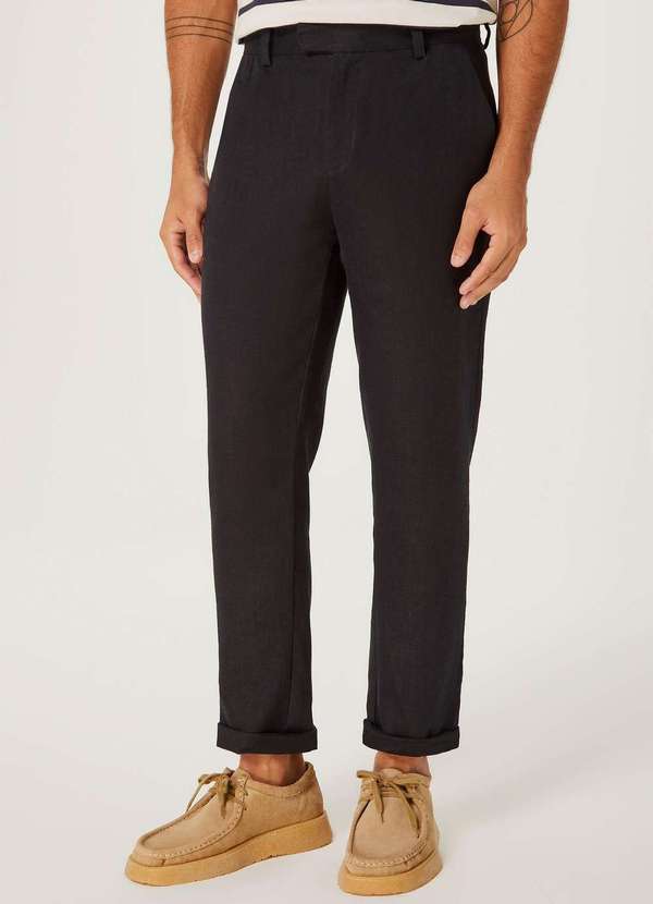 Calça masculina chino em rami, a peça versátil e elegante para várias ocasiões. Esta calça tem o estilo de alfaiataria e é feita em tecido de algodão com rami, fibra natural nobre e rústica como o linho. Detalhes da peça: Em tecido Modelagem reta Cós alfaiatado Fechamento em zíper e botão Bolsos faca nas laterais Bolsos embutidos costas com pence