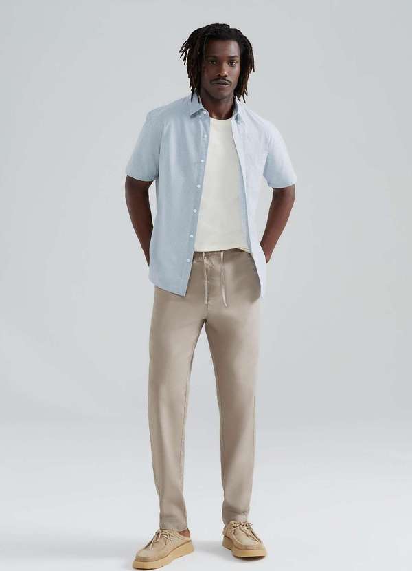 Calça Masculina Reta Com Linho, uma escolha ideal para os dias quentes de verão. Com seu tecido leve e macio, proporciona conforto durante todo o dia. A combinação perfeita de estilo e frescor para aproveitar o verão com elegância. Detalhes da peça: Em tecido Modelagem reta Cós de elástico Cordão para ajuste Bolsos laterais Bolsos embutidos costas