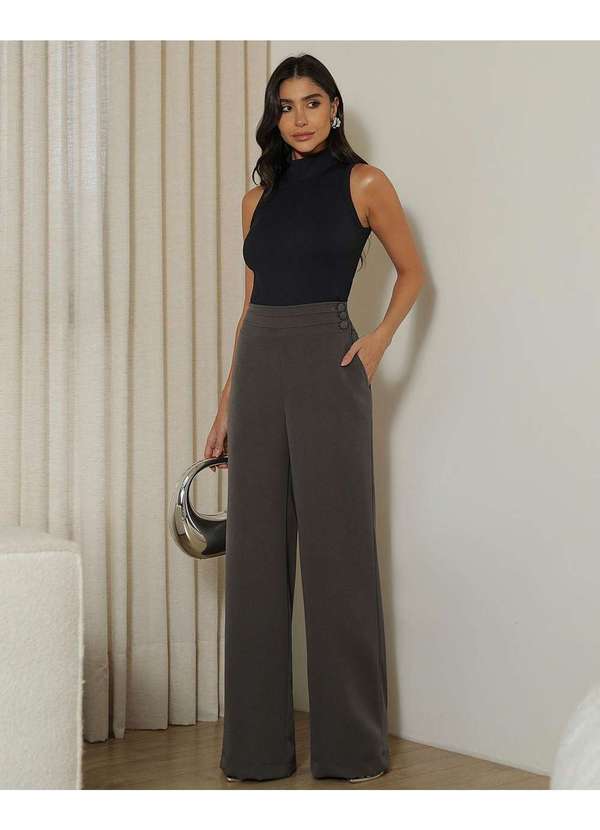 Miss Misses - Calca Miss Misses com Cos Largo com Botao Cinza