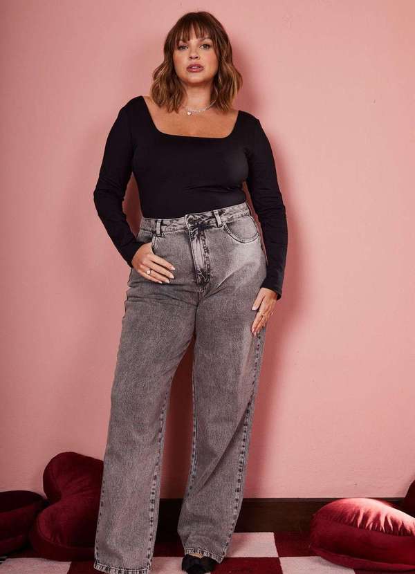 In Love - Calça Mom Jeans Crystal Jeans Preto Estonado Preto
