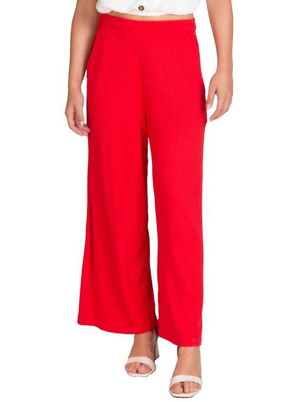 Infinita Cor - Calça Pantacourt Feminina Canelada Vermelho