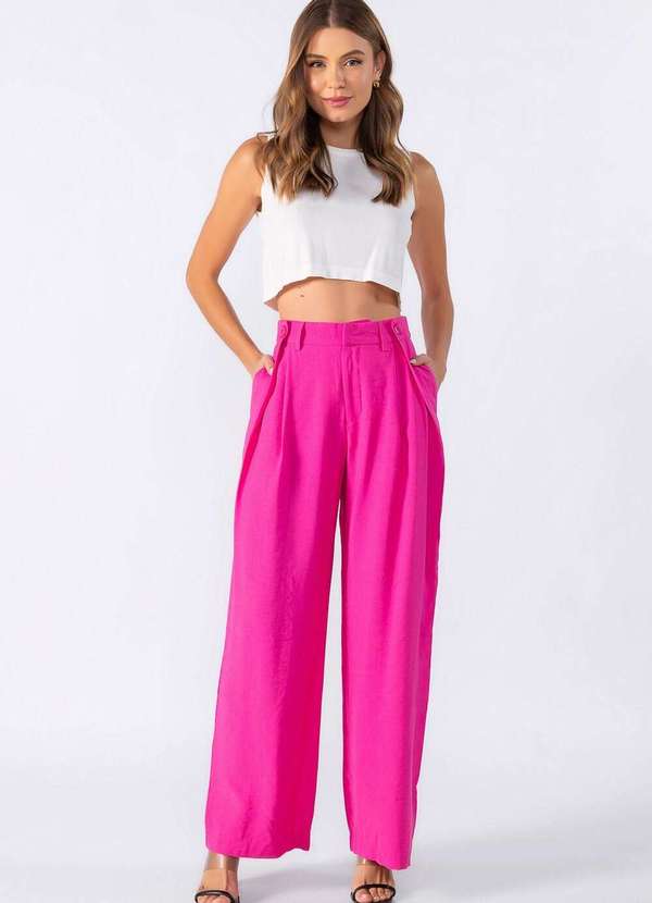 Lamis - Calca Pantalona com Detalhe no Cos Rosa