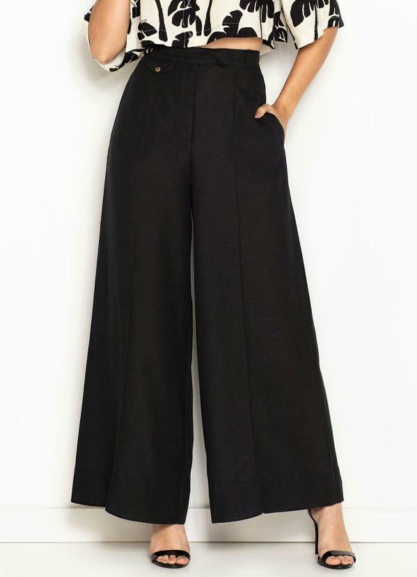 Farm - Calça Pantalona de Viscose Detalhe de Bolso Preta