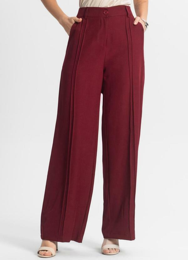 Rovitex - Calça Pantalona em Alfaiataria Veshine Vermelho