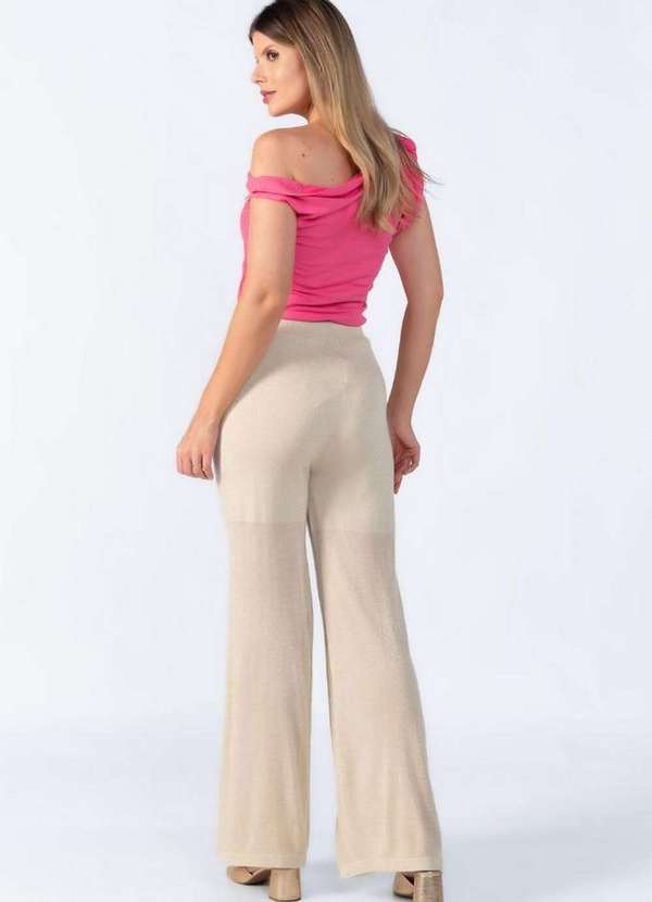 Lamis - Calca Pantalona Fios de Lurex Creme