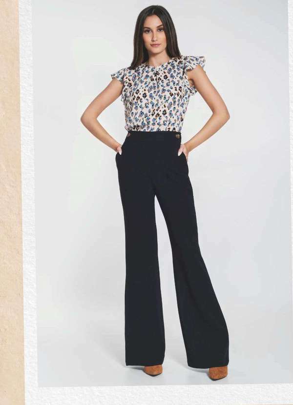 Calça Pantalona Maria Maturana Preto em tecido de crepe, leve e confortável, possui dois bolsos frontais e fechamento por zíper lateral. Use com blusas mais justas para equilibrar seu visual.