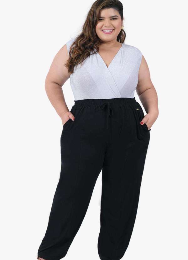 Looks Catwalk - Calça Pantalona Recorte com Bolso Moda Feminina Viscolycra Plus - Preto