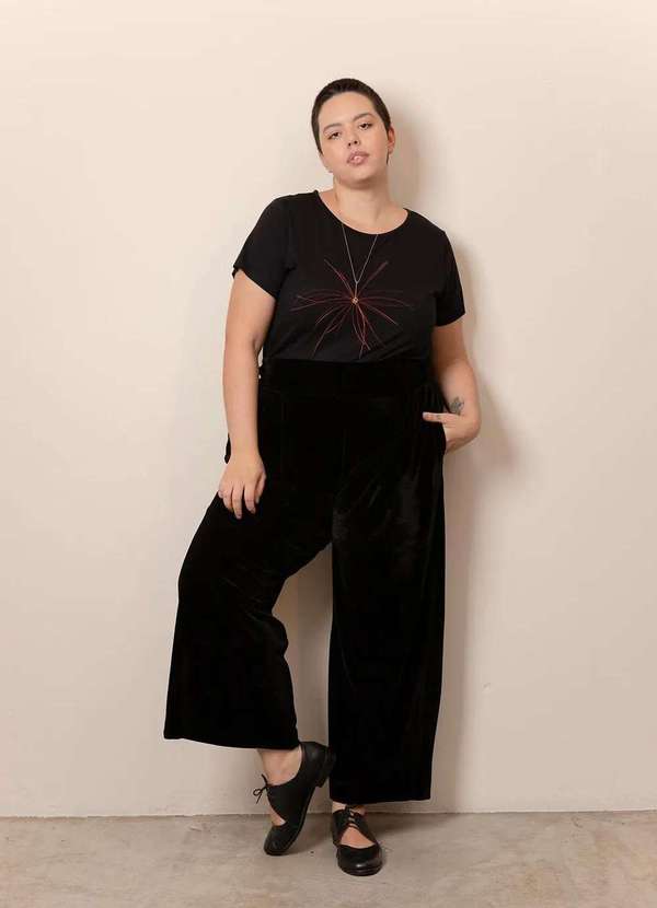 Bold - Calça Pantalona Veludo Plus Size Preto