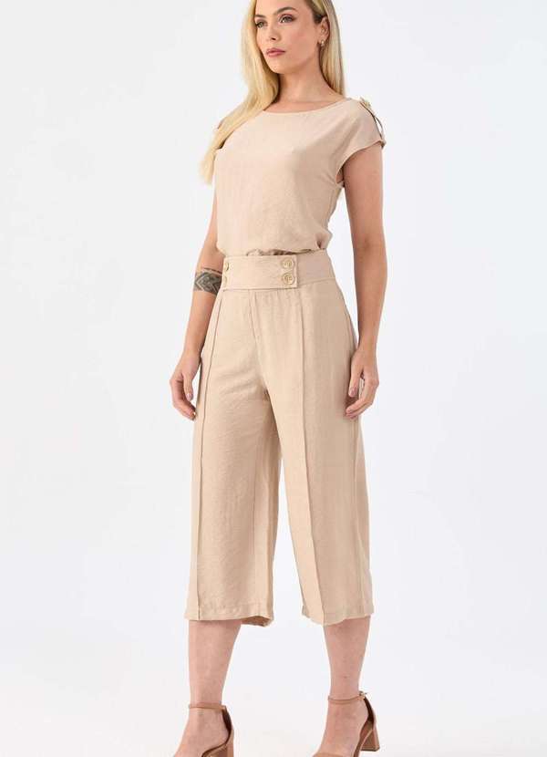 Pks - Calca Pks Pantacourt Viscose Bege