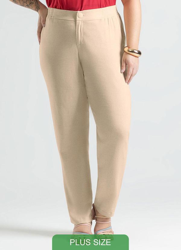 Cativa - Calça Plus Size Reta em Tecido em Linho Bege