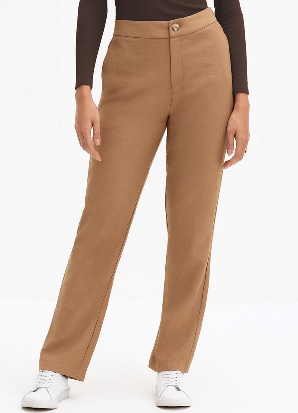 Principessa - Calça Reta Regular de Alfaiataria Mocha Mousse Duda