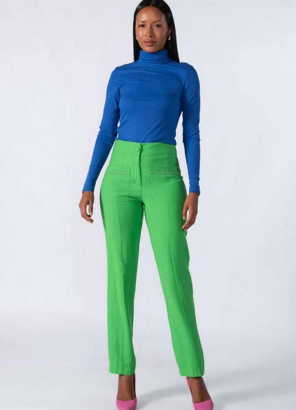 Lamis - Calca Reta em Viscose Detalhe no Bolso Verde